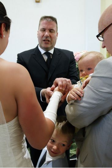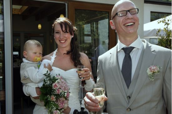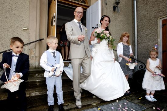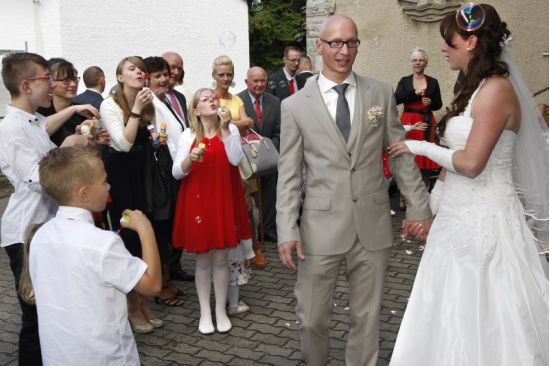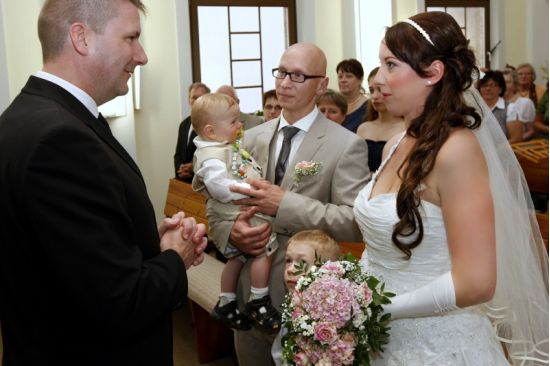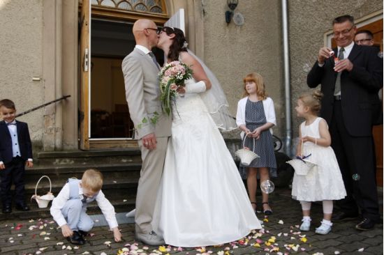 Claudia und Dani sind schon seit vielen Jahren ein Paar und hatten sogar schon zwei gemeinsame Kinder, als sie sich entschlossen, ihre Liebe nun auch offiziell durch die Trauung in ihrer neuapostolischen Kirchengemeinde zu bekunden. Ich habe noch keine Hochzeit erlebt, wo das Brautpaar, aber auch Angehörige und Gäste so entspannt waren. Die Feier fand in der brandenburgischen Provinz in einem netten Gasthaus statt, das direkt an einem wunderschönen Park gelegenen war.