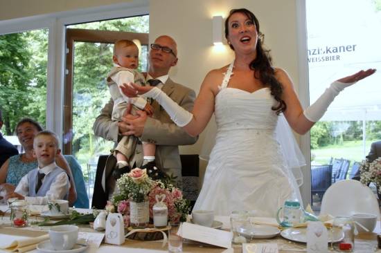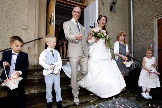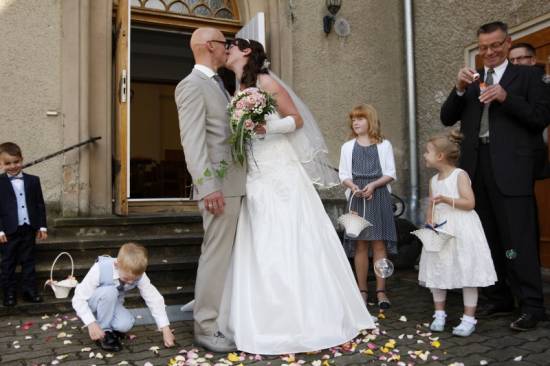 Claudia und Dani sind schon seit vielen Jahren ein Paar und hatten sogar schon zwei gemeinsame Kinder, als sie sich entschlossen, ihre Liebe nun auch offiziell durch die Trauung in ihrer neuapostolischen Kirchengemeinde zu bekunden. Ich habe noch keine Hochzeit erlebt, wo das Brautpaar, aber auch Angehörige und Gäste so entspannt waren. Die Feier fand in der brandenburgischen Provinz in einem netten Gasthaus statt, das direkt an einem wunderschönen Park gelegenen war.