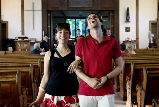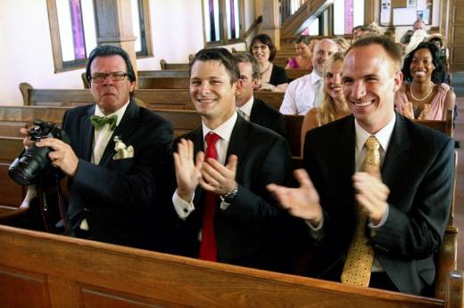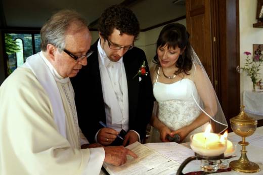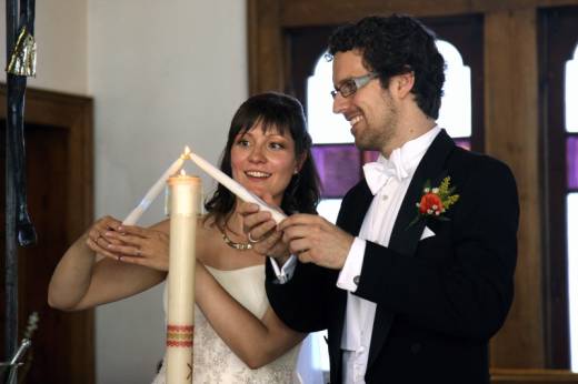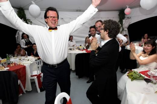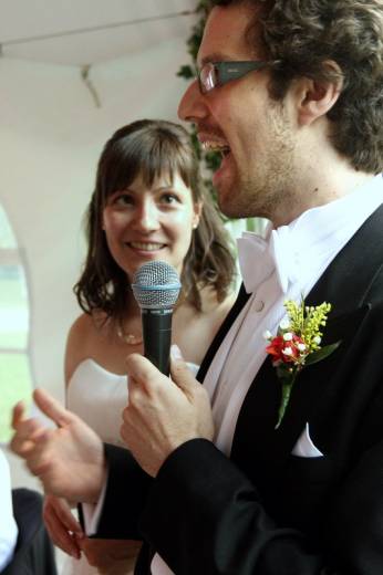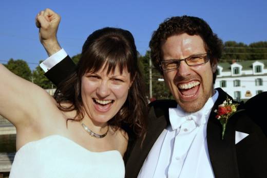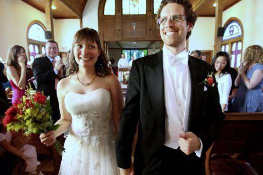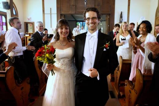 Der Liebe wegen ist Kaspar von Berlin nach Kanada gezogen, wo er nun seine Geneviève heiratete. Die beiden haben einen sehr internationalen Freundeskreis und so war die Feier ein spannendes, babylonisches Sprachwirrwarr. Absolut perfekt organisiert hingegen war die Hochzeit. Mich hat natürlich gefreut, dass wir schon vorher die Kirche aufsuchen konnten und mit sehr viel Spaß die Zeremonie proben konnten. Der Priester war leider nicht dabei, sonst hätte man ihn darauf hinweisen können, dass der Bräutigam nicht «Karl» heißt, wie er während der Trauung hartnäckig verkündete. In Kanada wird die kirchliche Trauung auch staatlich anerkannt. Andere Länder, andere Sitten: Mit dem Anschnitt der Hochzeitstorte um Mitternacht endete die Feier.