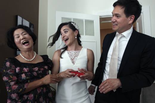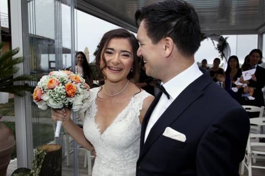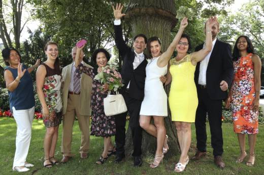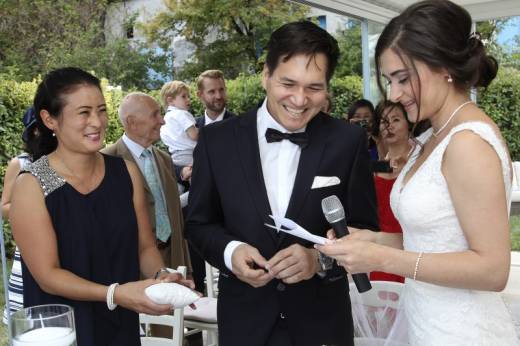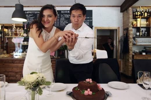 Jens ist halb koreanisch, halb deutsch. Lejla ist als bosnischer Flüchtling in Schweden aufgewachsen. Ihre Familie lebt über die ganze Welt verstreut und reiste zur Hochzeit von überall her, sogar aus dem fernen Australien, an. Standesamtlich wurde im engsten Kreis in Berlin geheiratet, während die große Feier mit der ganzen Familie und allen Freunden ganz romantisch auf einem uralten Weingut in der Emilia-Romagna stattfand.